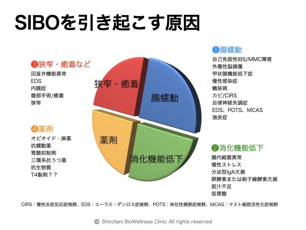 本来は細菌が少ないはずの小腸に過剰な細菌が増殖してしまう状態で、強いガス、腹部膨満、下痢、吸収不良、栄養不足などを引き起こします。