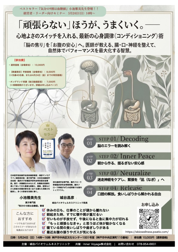 <主催>: 城谷バイオウェルネスクリニック 共催: Inner Voyage株式会社